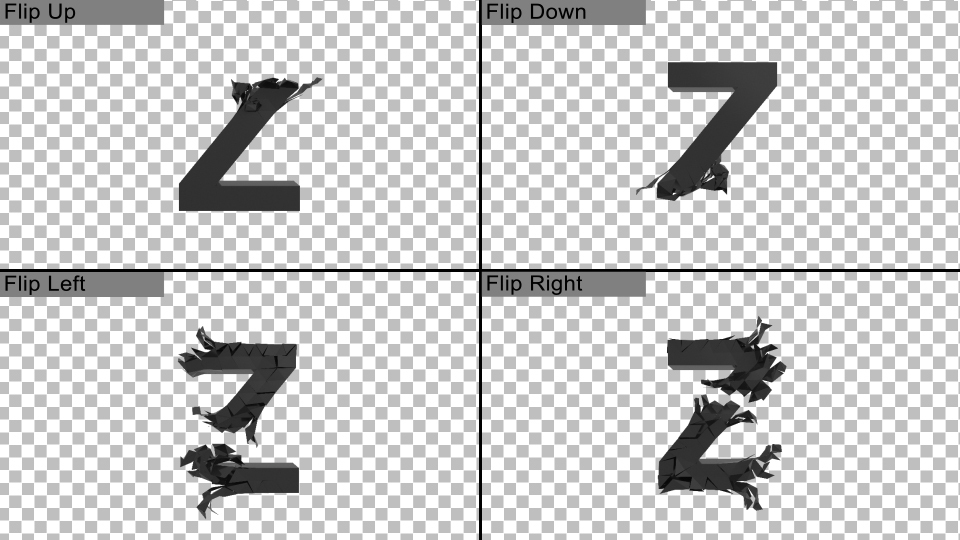Alphabet in 3D flip paper animated form.Typeface includes the characters (Z) with 4 types of movement. You can create titles with very little effort.All assets come pre-rendered with alpha channels, so it is as easy and drag.Courtesy After Effects Project included for faster editing and coloring.